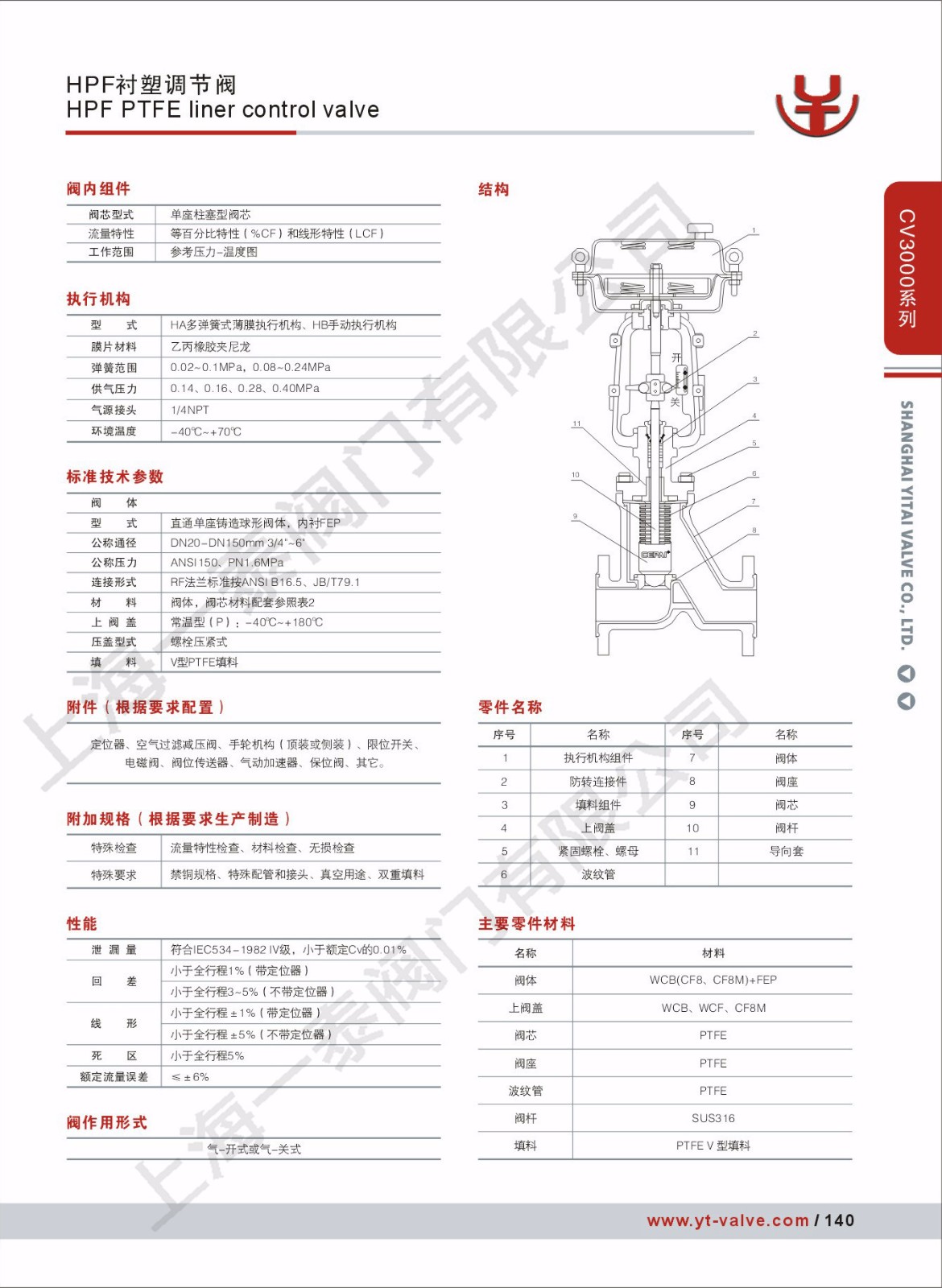 上海一泰阀门有限公司是一家集生产,销售与一体的大型综合性阀门企业。一泰阀门生产的HPF衬塑调节阀寿命长,性能可靠。