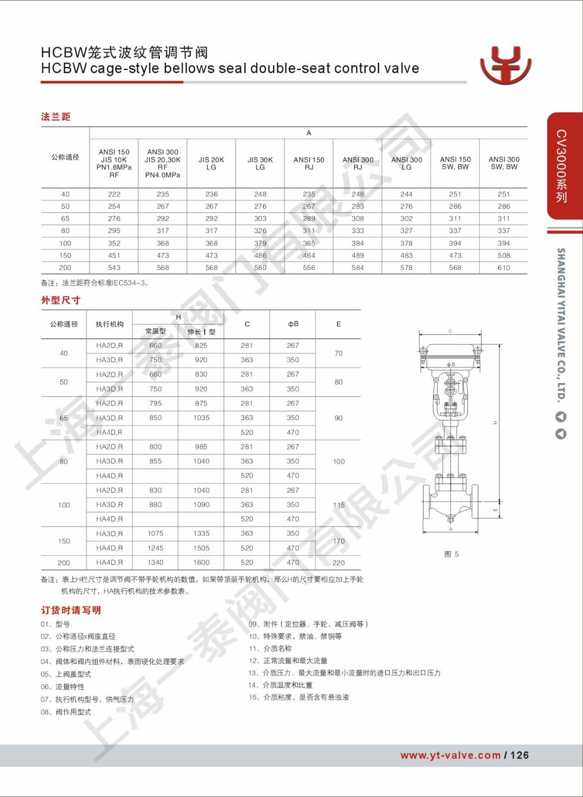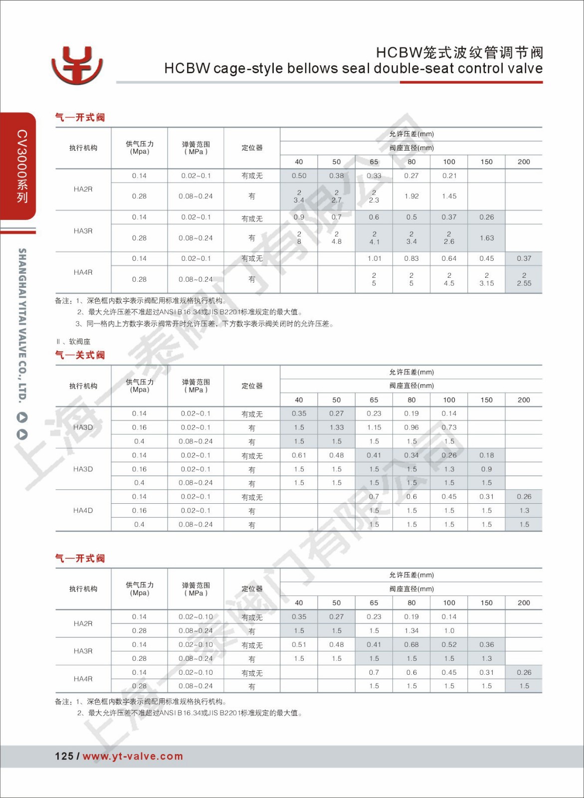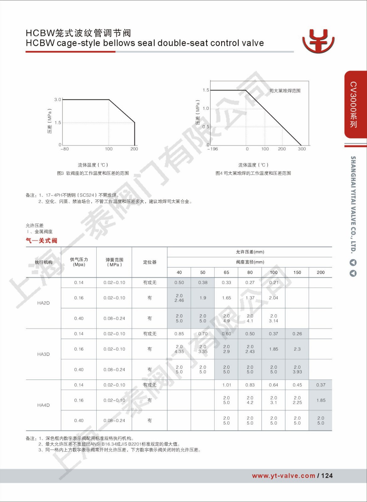 一、HCBW笼式波纹管调节阀简介: HCBW笼式波纹管调节阀配用多弹簧薄膜执行机构,是一种压力平衡式的调节阀。HCBW笼式波纹管调节阀阀体结构紧凑,流体通道呈S流线型的,具有压降损失小,流量大,输出压力大,可调范围广等优点。上阀盖采用波纹管密封结构,可彻底消除工艺介质从阀杆运动间隙向外运动的可能性,这是波纹管密封阀的显著特点之一。由于波纹管元件本身的可变性和卓著的抗老化性,这种调节阀完全克服了填料密封阀通常存在的调料老化和温度敏感等弱点。其次采用波纹管一填料双重密封结构,安全可靠性更好。因此他在剧毒,强腐蚀性,放射性等稀有特殊介质的广泛应用中取得高质量的控制效果和经济效益。二、HCBW笼式波纹管调节阀特点:1、欧系精装、控制精确、密封性好、设计先进、品质优良2、技术精湛、结构优越、流动平稳、响应迅速、替代进口3、压降损失小、输出力稳定、流量系数大、通道光滑截面相等4、设定点可调且范围宽,便于用户在设定范围内连续调整;5、膜片式执行机构较气缸式机构检测精度高,动作灵敏;6、阀内采用压力平衡机构,使调节阀反应灵敏、控制精确、允许压差大。7、阀体按流体力学原理设计的等截面低流阻流道,额定流量系数增大30%。8、调节切断型采用软密封结构阀芯,达VI级泄漏标准(零泄漏)。9、伺服放大器采用深度动态负反馈,可提高自动调节精度。。10、流体对阀芯作用方向都处于流开状态.故阀能稳定工作。11、执行机构采用多弹簧结构.高度减少30%、重量减轻30%。三、HCBW笼式波纹管调节阀工作原理: HCBW笼式波纹管调节阀就是以压缩空气为动力源,以气缸为执行器,并通过阀门定位器、电磁阀、转换器、等组合件去带动阀门,实现开关量或比例式调理,接纳工业自动化操控系统的操控信号来完结调节管道介质的:流量、压力、温度等。HCBW笼式波纹管调节阀的特点就是操控简略,反应快速,且实质安全,不需别的再采纳防爆办法。