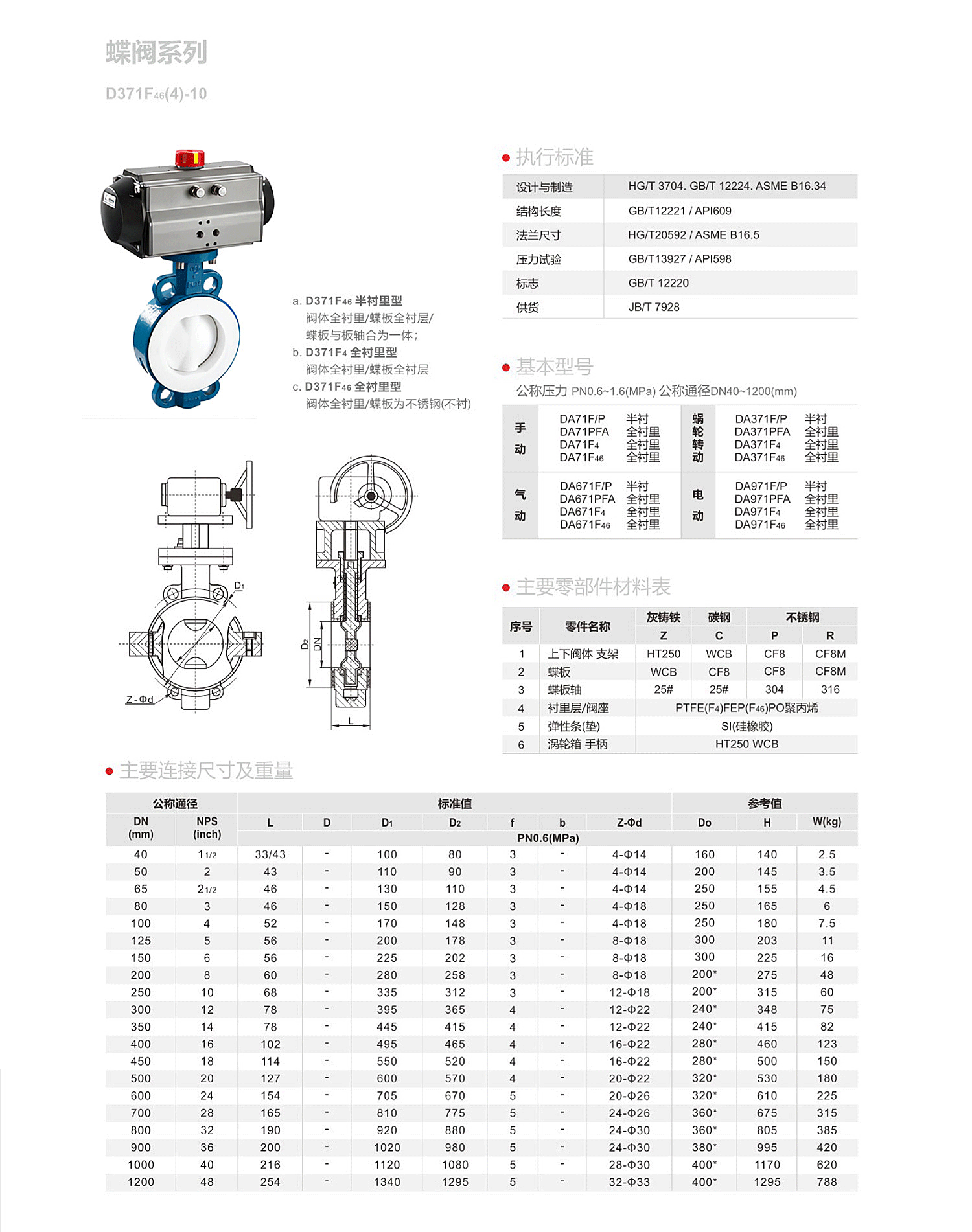 上海一泰阀门有限公司生产的气动衬氟对夹蝶阀分为半衬里型与全衬里型,半衬里型为阀体全衬里,蝶板全衬层,蝶板与板轴合为一体,全衬里型为阀体全衬里,蝶板全衬层或蝶板为不锈钢(不衬)。