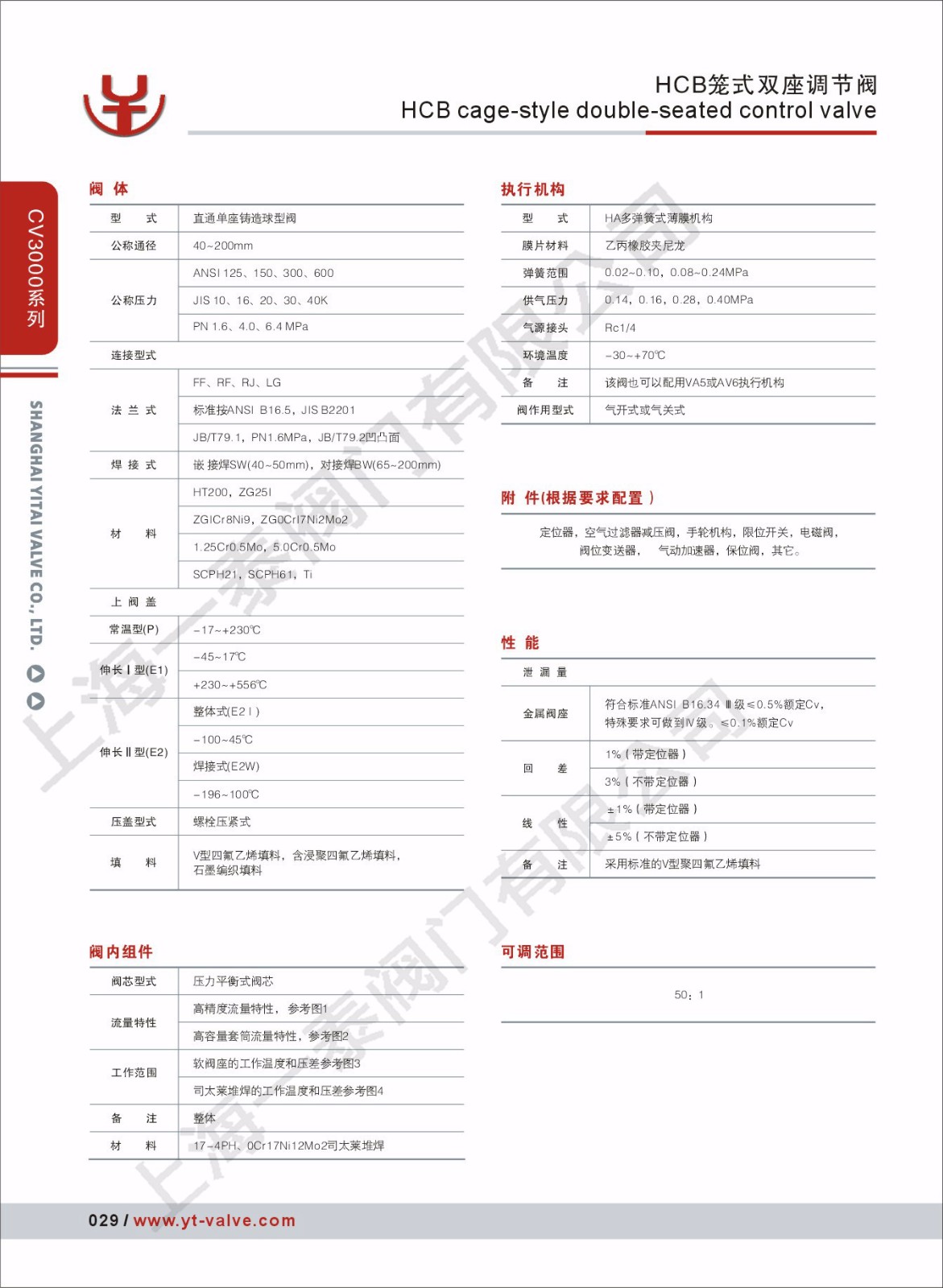 十大品牌上海一泰阀门有限公司生产的HCB气动笼式双座调节阀制各种高温、低温的高压流体,是一种压力平衡式的调节阀,阀内流体通道呈S流体线型,还设有一个改善套筒周围流体平稳流动的导向翼,优点是多弹簧执行机构高度低、重量轻、装备简便,压降损失小,流量大,可调范围广。流量特性曲线精度高,动态稳定性好。噪音低,空化腐蚀小,调节阀动态稳定性好、噪音低、防空化,适宜控制各种温度的高压差流体。配用LHA多弹簧薄膜执行机构或电动执行机构,其结构紧凑、输出力大。外观精美,鲜亮大气,可以说美观又好用。价格也适中,是各行业比较信赖、得宠的产品。一泰阀门也诚邀您来电咨询,或者亲临本公司来一起探讨。
